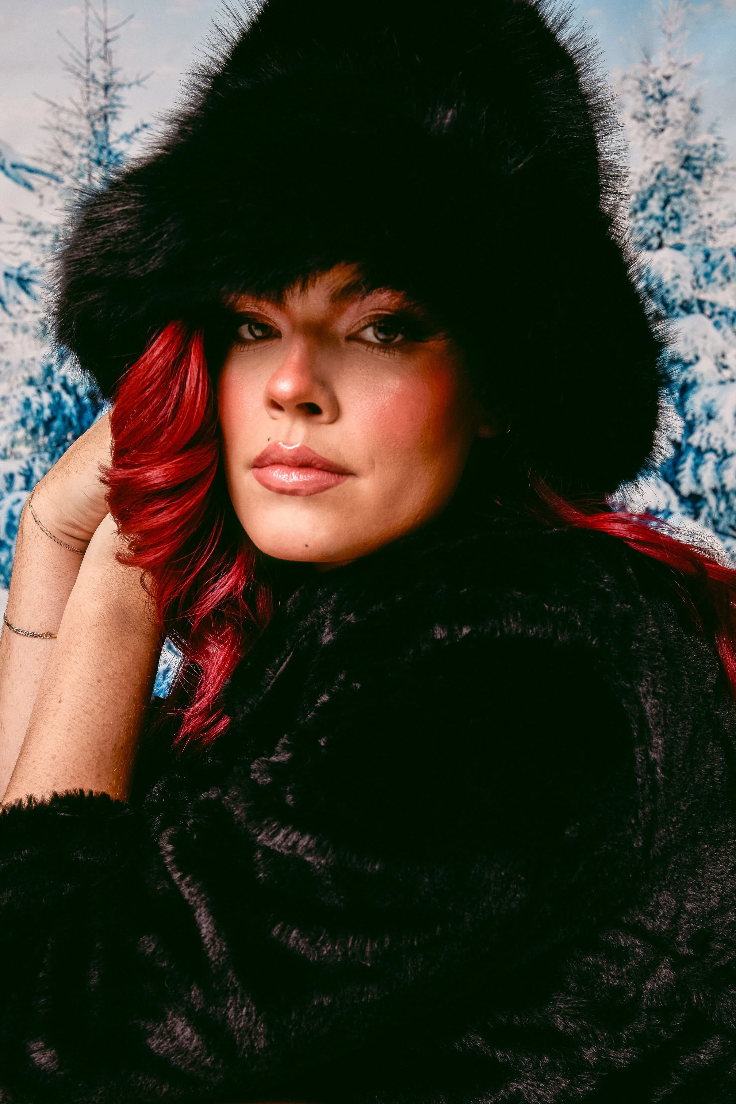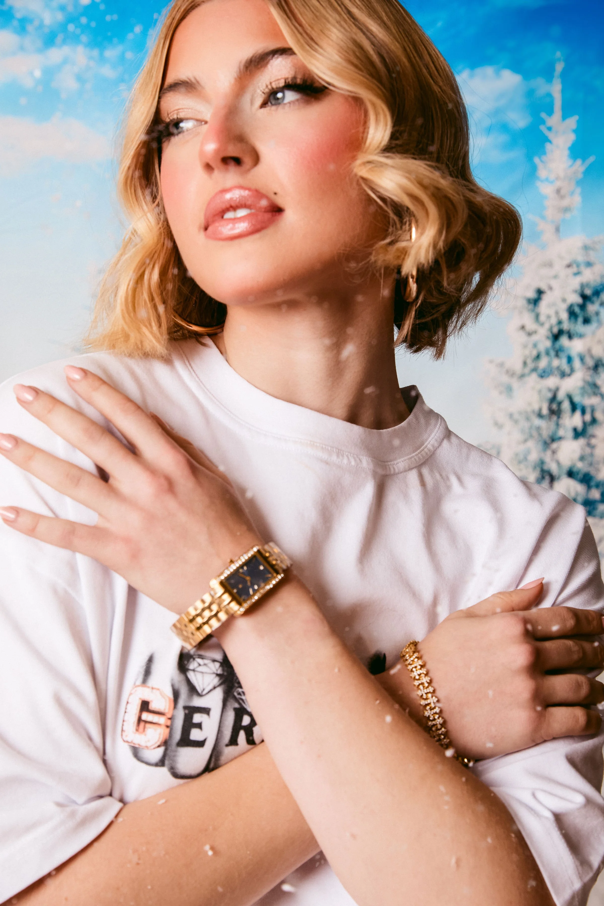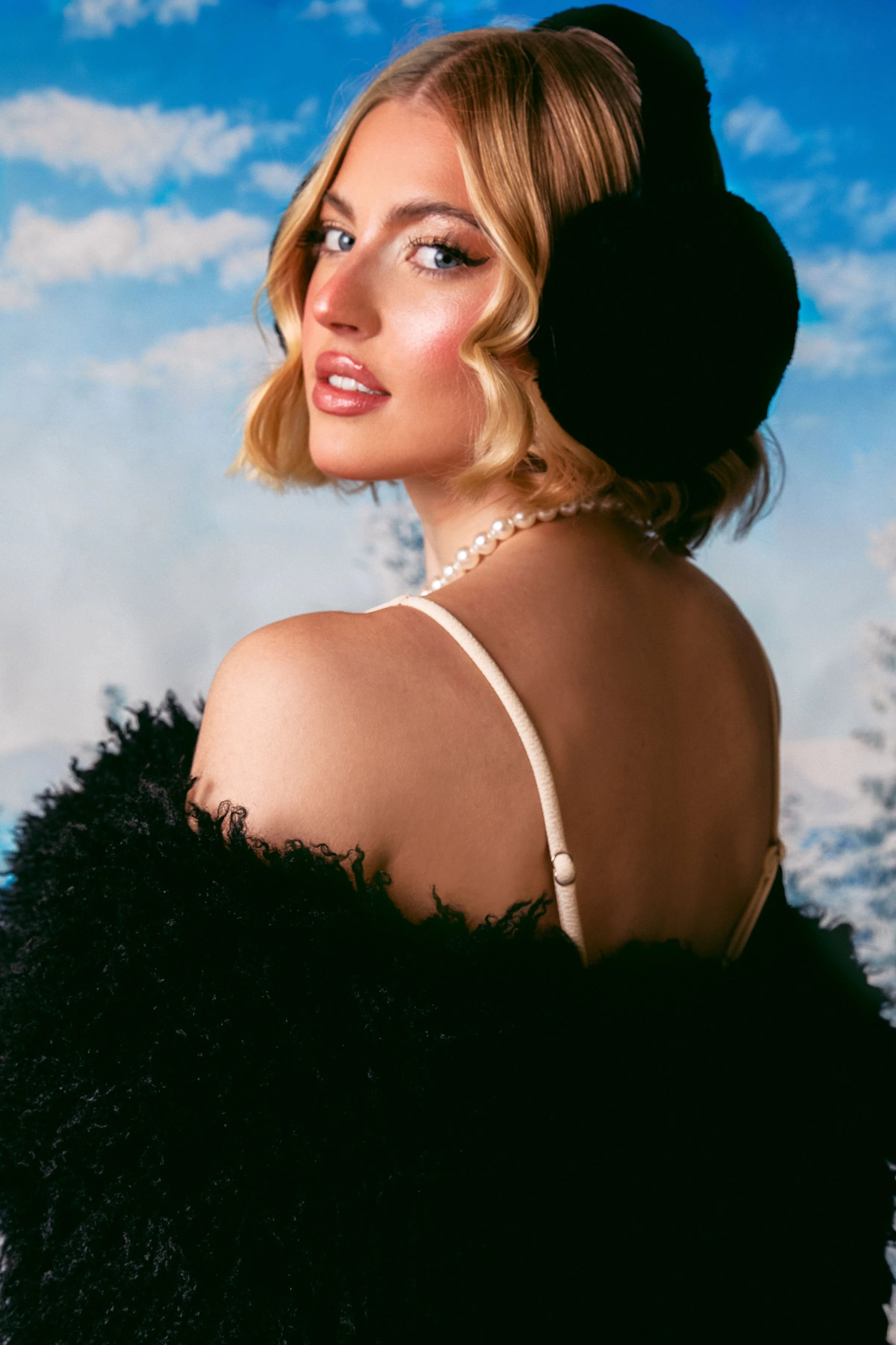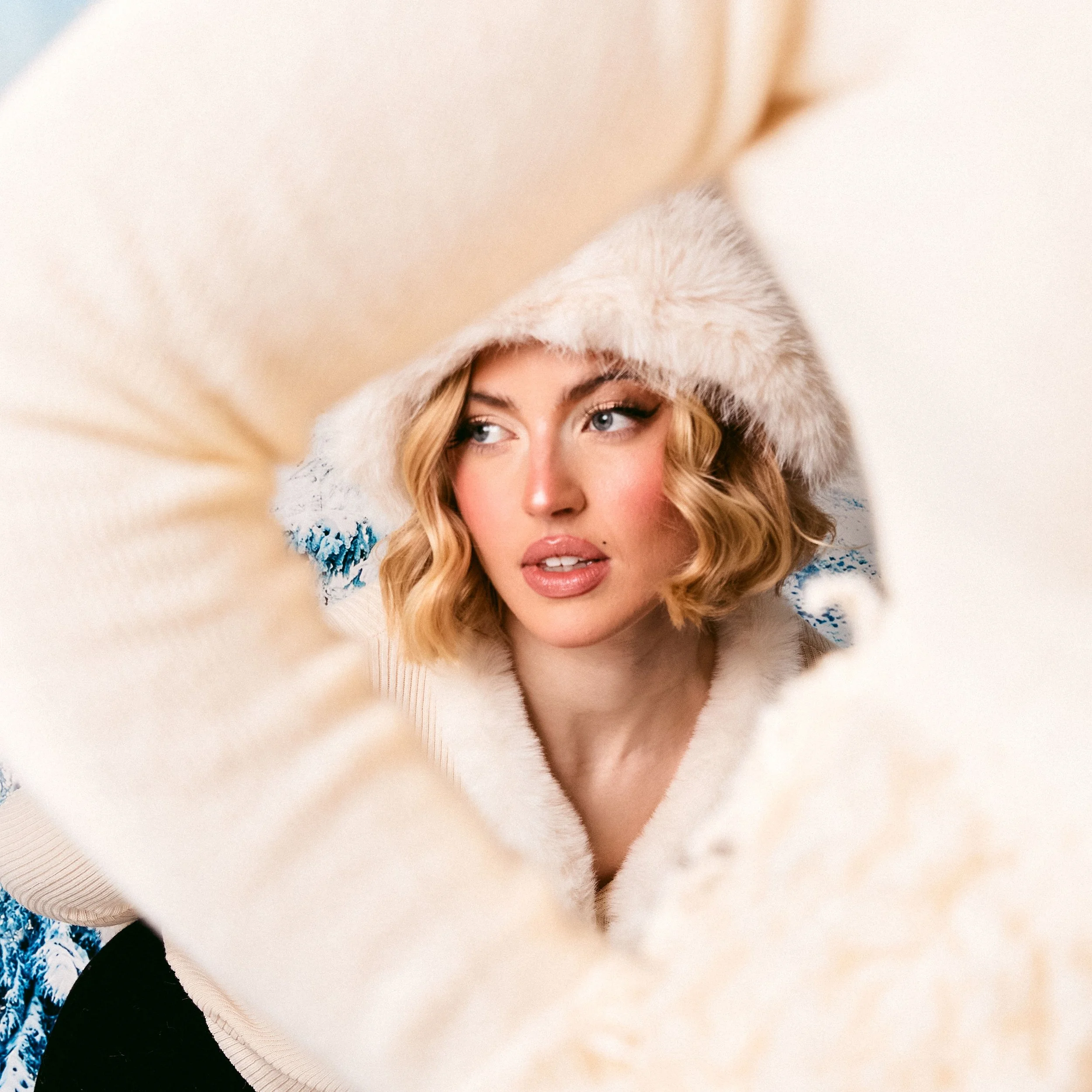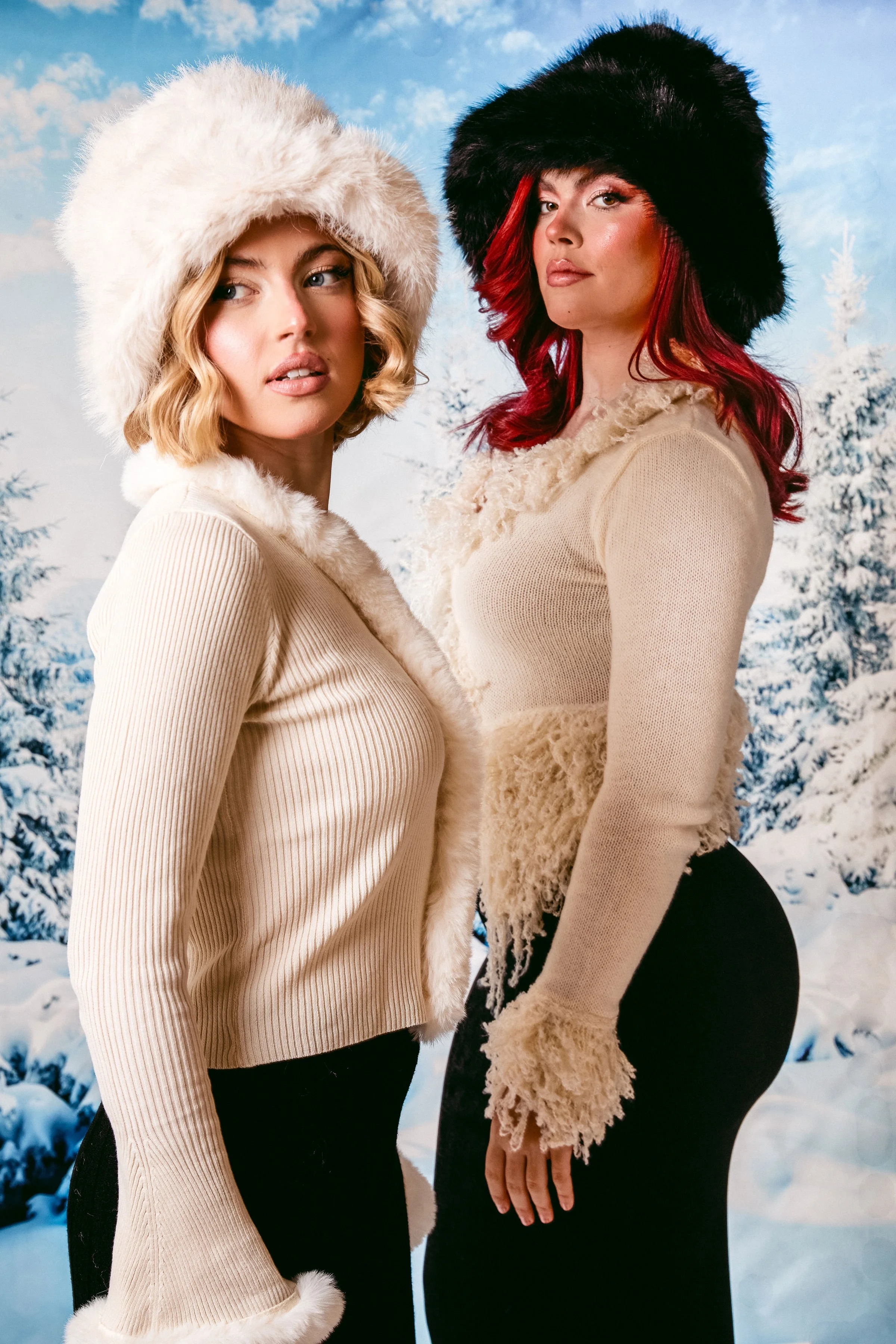 Off Piste captures a fun and stylish winter vibe, mixing cozy elegance with a modern, carefree energy. The snowy backdrop adds a seasonal charm, while the bold fashion choices and effortless confidence bring a fresh, contemporary feel. It strikes a balance between playful and polished, making winter look both glamorous and full of personality.